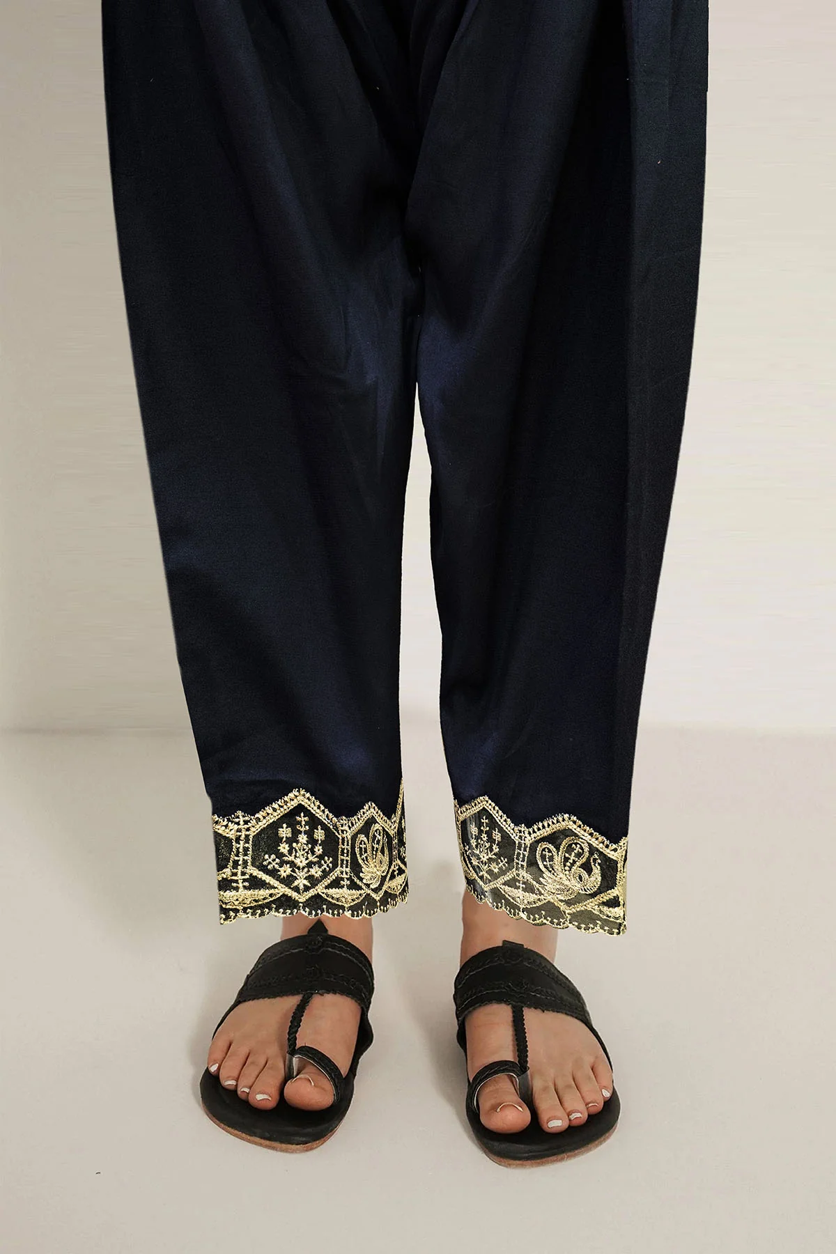 RAWEN EMBROIDERED SILK TROUSER STITCHED