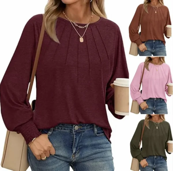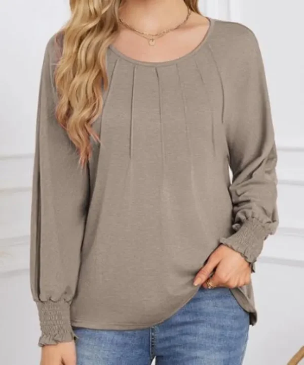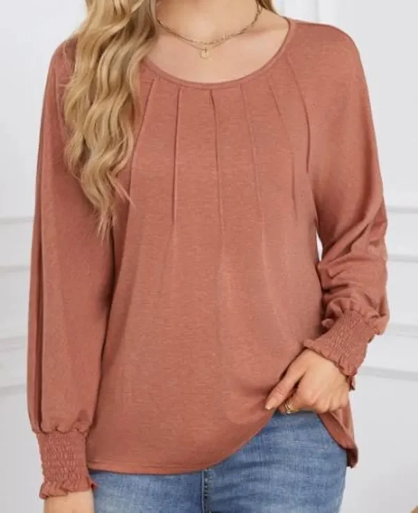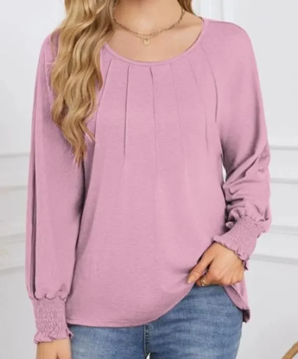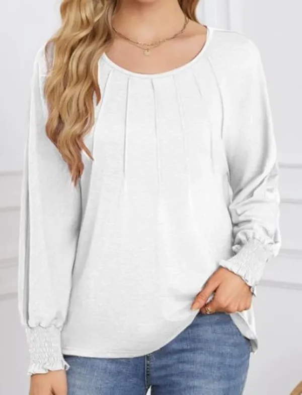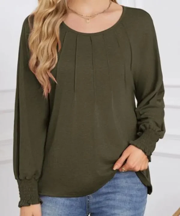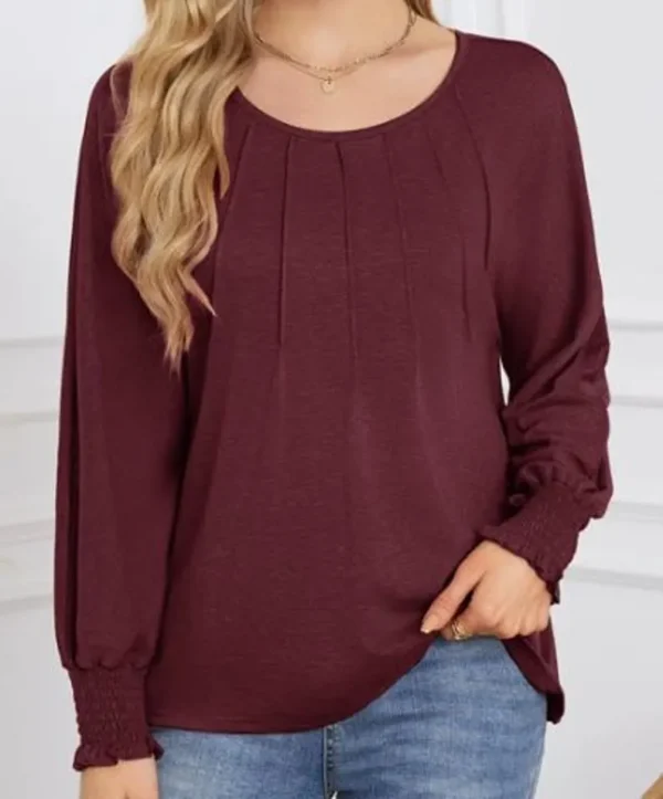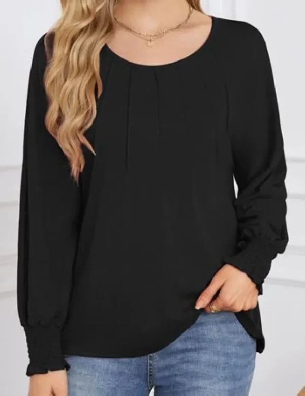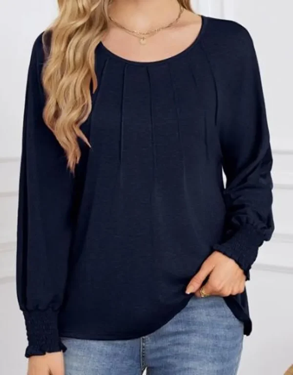 Round Neck Pleated Long-Sleeved Casual Tops – Business Casual Shirt For Women